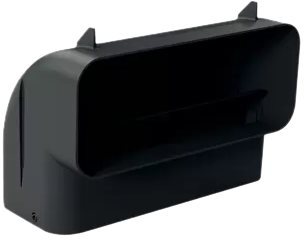 Siemens HZ9VDSB3 90° lodret flad kanalbøjning i sort til ventilationssystemer. Denne kanalbøjning har en mindre radius og passer til pladsbesparende installationer i skabe og bag køkkenelementer, samtidig med at den sikrer god luftgennemstrømning.
