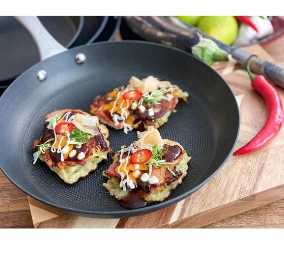 Satake's serie af stegepander har fantastiske funktioner. Panderneer fremstillet af letvægts støbejern med Honeycomb PPG Xylan plus-belægning. Den knudrede overflade forhindrer råvaren i at klæbe fast til panden og giver en fremragende stegeflade. Panden kombinerer støbejernspandens fantastiske egenskaber med fordelene ved en non-stick-belægning.