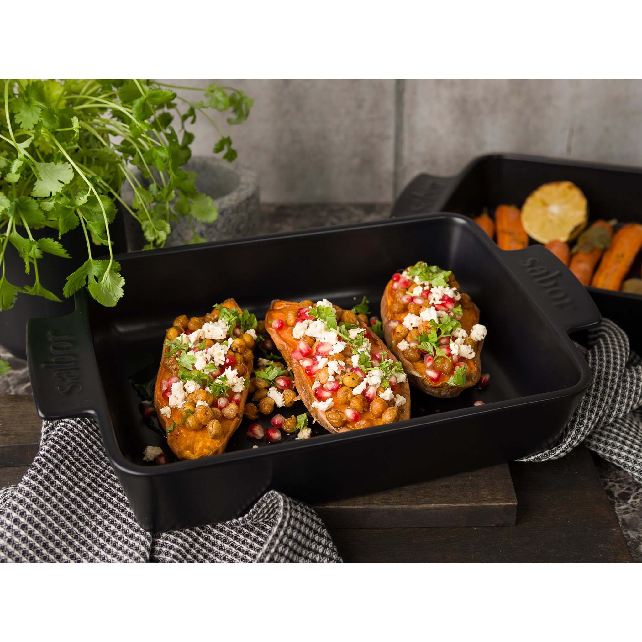 Sabors ovnfaste fad er et stilrent og funktionelt fad i et tidløst design med sort glasur.