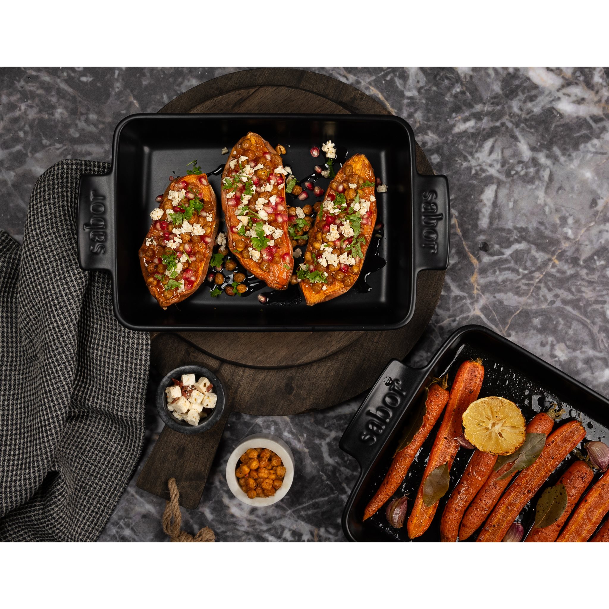 Sabors ovnfaste fad er et stilrent og funktionelt fad i et tidløst design med sort glasur.