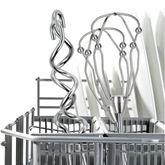 En separat knap gør det nemt at fjerne piskeriset og dejkrogen. Både piskeris og dejkroge tåler opvaskemaskine. MFQ4930B har ekstra effektive FineCreamer-viskere for at opnå de bedste resultater på kortere tid, og de robuste dejkroge i rustfrit stål kan bruges til tungere deje.