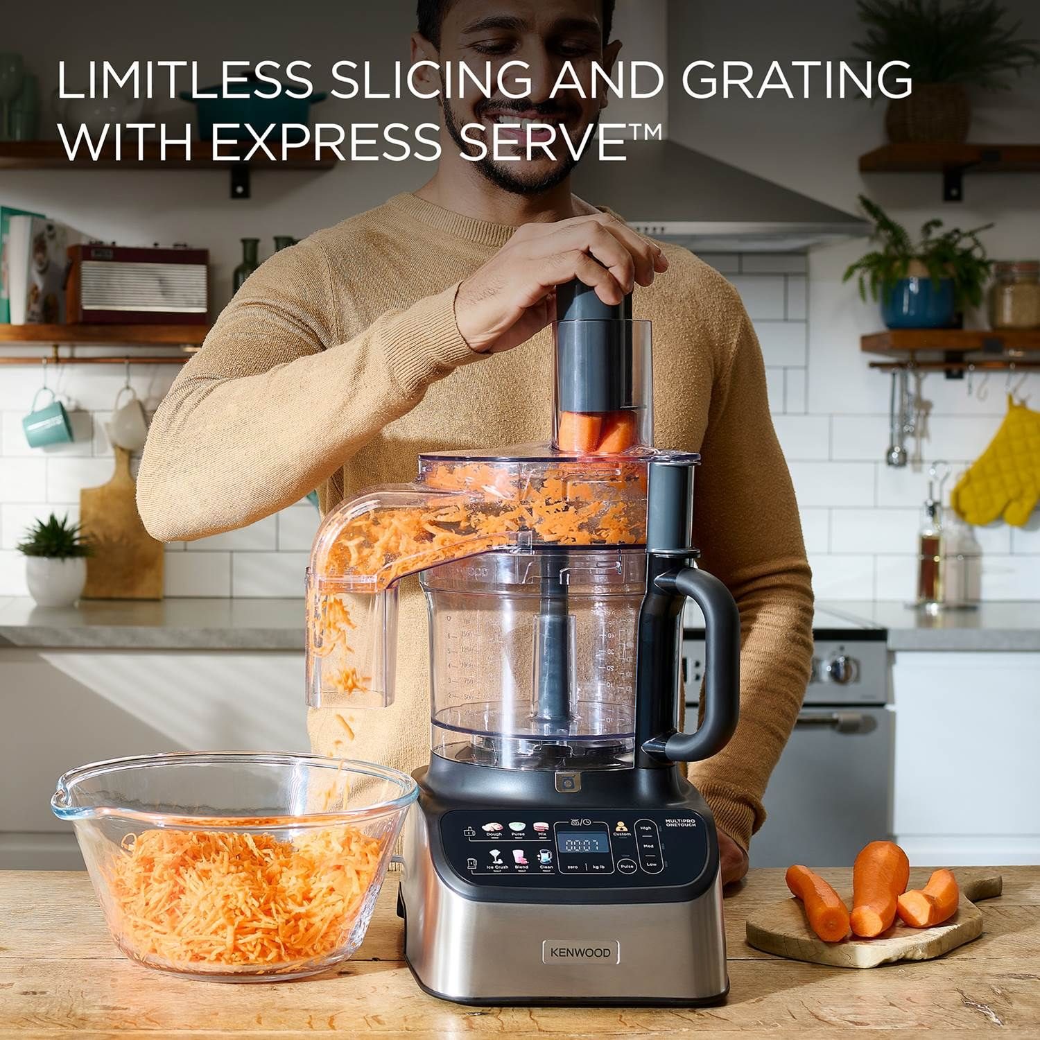 Foodprocessoren har et touch-display, hvor du fra de forskellige menuer vælger, hvad du ønsker at få hjælp til. Du starter blot maskinen ved at trykke på startknappen og det samme når du er færdig og ønsker at stoppe maskinen. Nu er der også OneTouch Custom-funktionen, der giver dig mulighed for at gemme en unik opskrift, som du nemt kan starte om morgenen. Indstil for eksempel indstillingerne for din morgensmoothie og start bare maskinen om morgenen, når du vågner, og du har en smoothie at tage med på vejen.