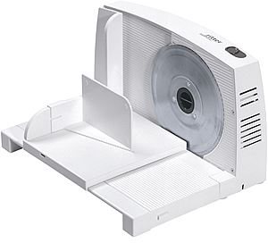 Skæremaskinen Orbis 1 fra Ritter er lavet af hvid plast af høj kvalitet og har et sammenklappeligt, 18 cm bredt foderbord. Det takkede universalblad, 17 cm i diameter, skærer op til 14 mm tykke skiver. Skæreren kan bruges til midlertidig eller kontinuerlig udskæring med en 5 minutters arbejdscyklus. Vognen er aftagelig og delbar for pladsbesparende opbevaring.
