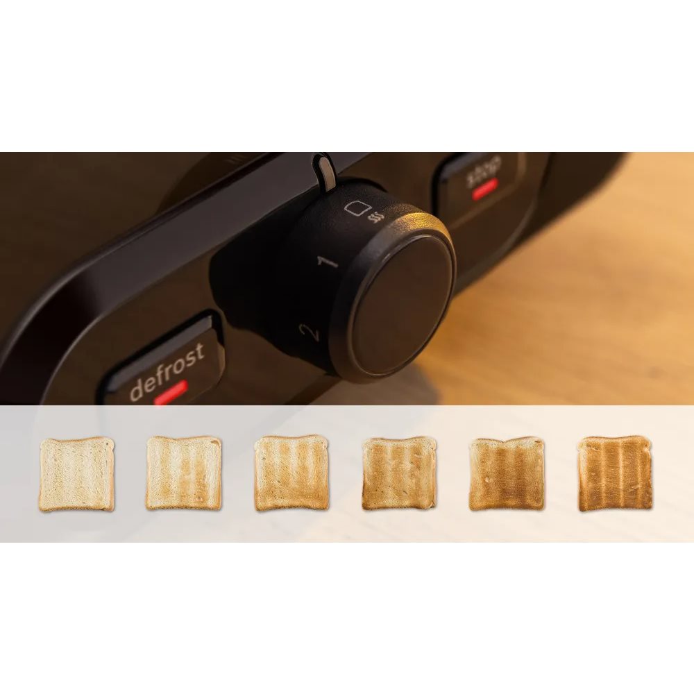 Du kender situationen. Morgenmaden kan være hektisk. Med automatisk sluk er du på den sikre side, idet brødristeren slukker selv hvis et brød sætter sig fast inden i. Alt du skal bekymre dig om er hvad du skal have på af pålæg på brødet.