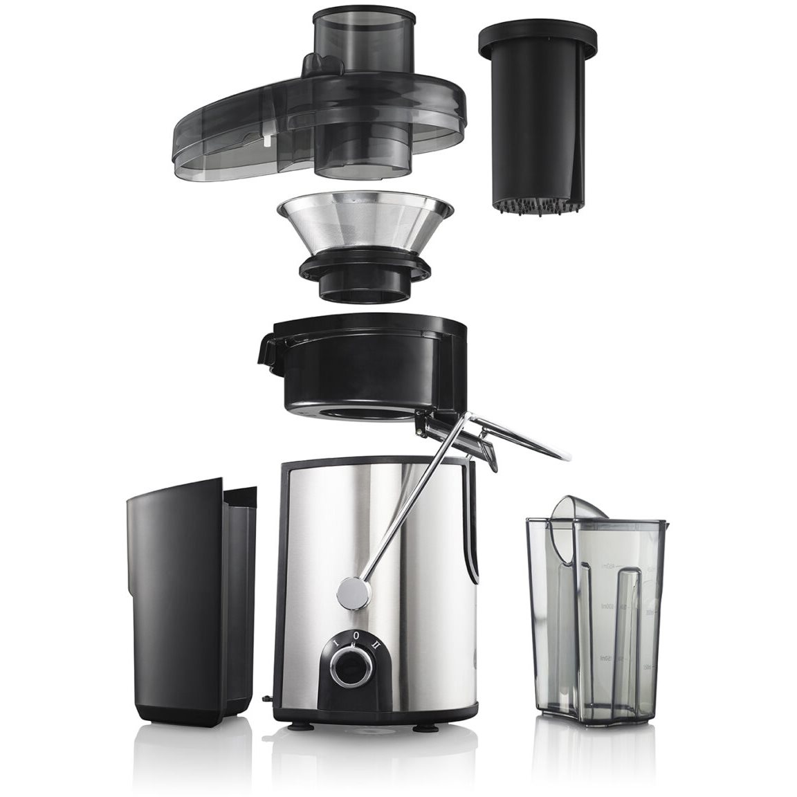 Brug dine yndlingsfrugter og -grøntsager til at skabe enestående smag. Prøv en tropisk blanding af appelsin og ananas, eller lav en sund, smagfuld gulerods- og rødbedejuice. Placer den medfølgende beholder under juicerens udløb for at opsamle saften, perfekt til øjeblikkelig servering.