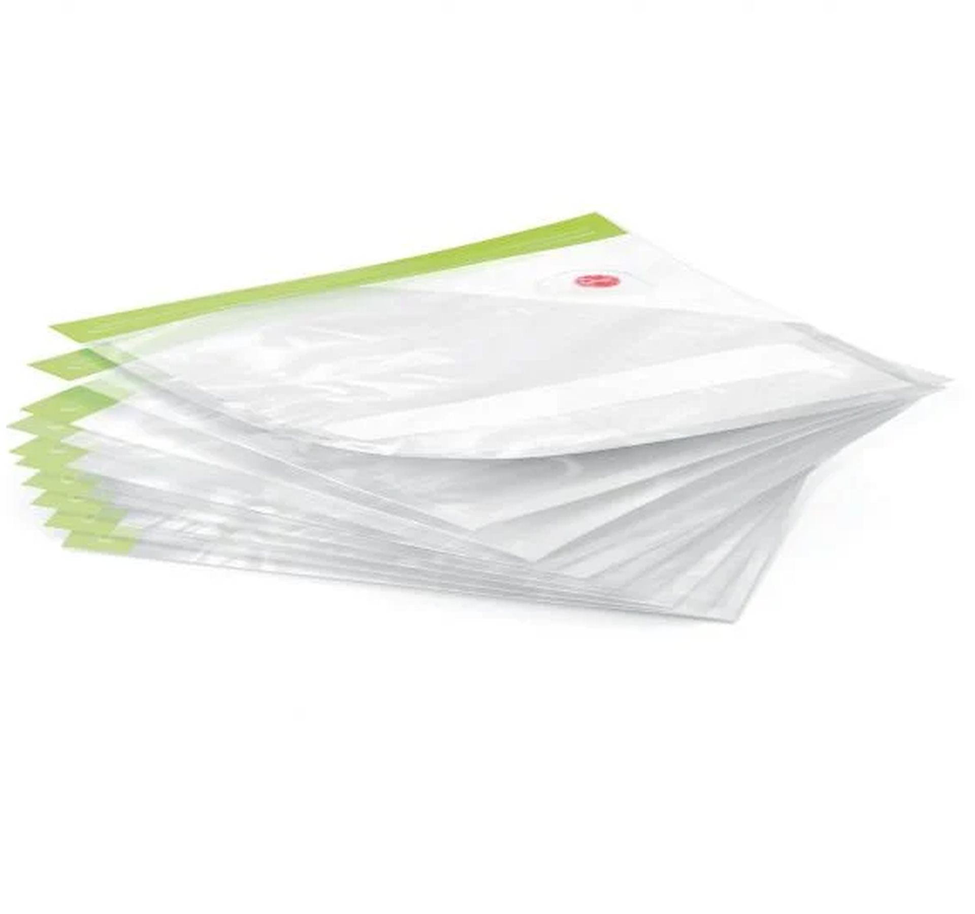 Poserne er stærke og har flere lag, der skaber en lufttæt opbevaring af mad. Indvendigt er der en struktur, så luften lettere kan pumpes ud. Poserne er genanvendelige og har en dobbelt lynlåslukning, så de er nemme at lukke og åbne. De har en hvid etiket, som du kan skrive på for at holde styr på indhold og dato.