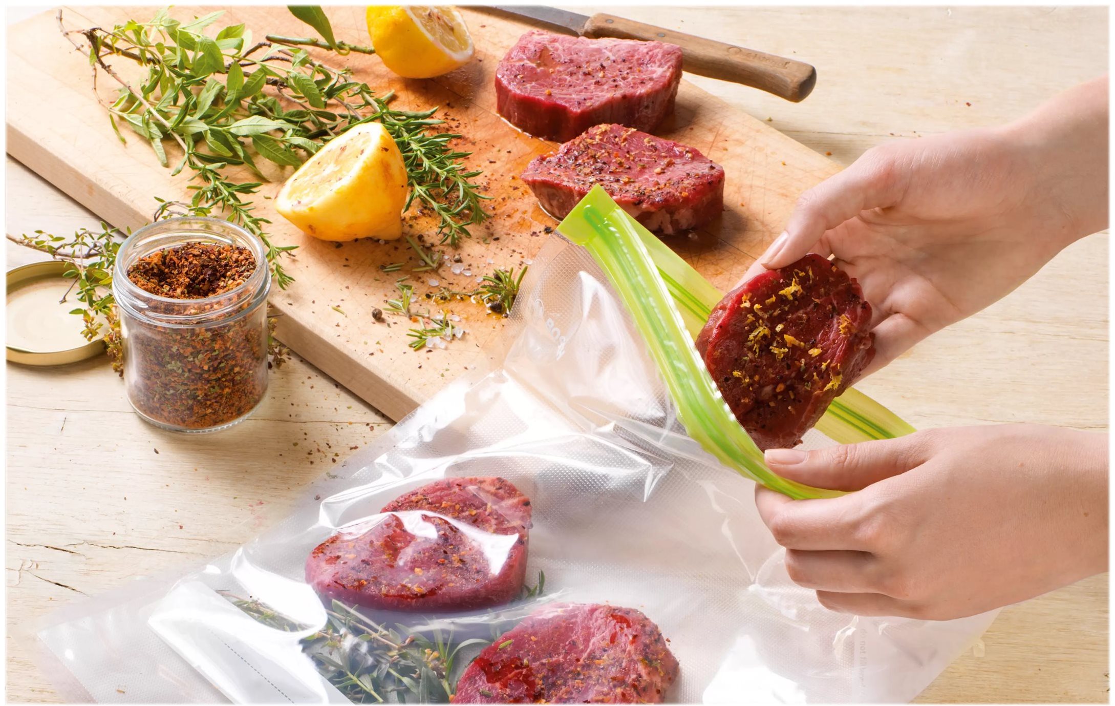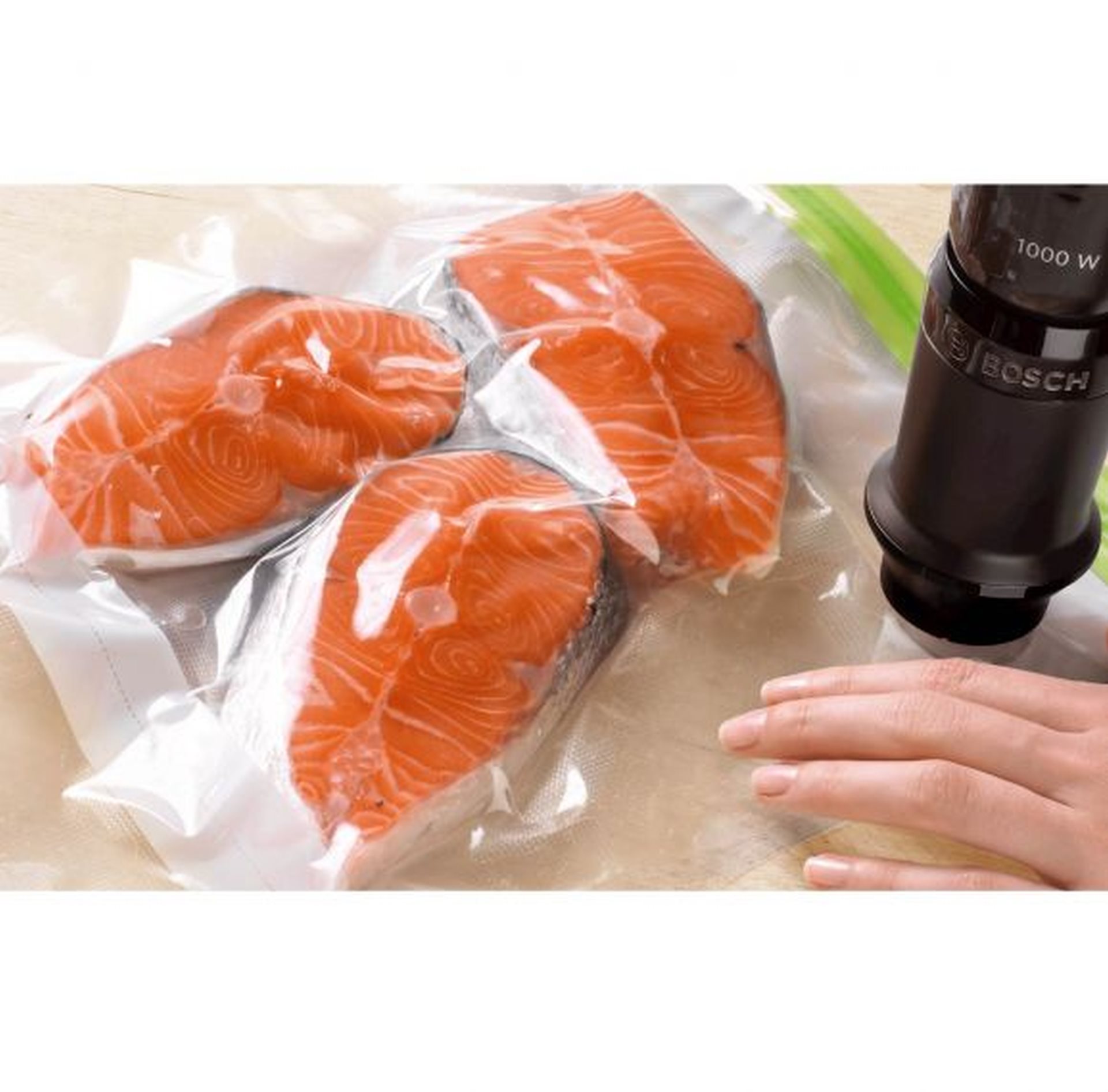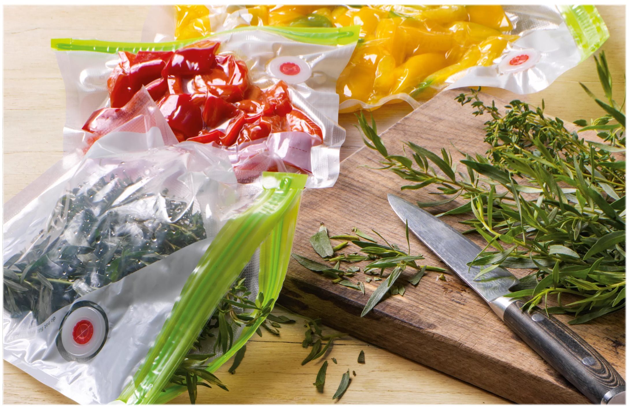 Tilbered din mad sous-vide, og få mest muligt ud af smagen. Vakuumposerne med lynlås er perfekte til denne tilberedningsmetode. Forsegl posen med kød, fisk eller grøntsager, og pump luften ud. Nu kan du lave mad i damp- eller vandbad op til 85 °C. Din mad bliver både velsmagende og saftig.