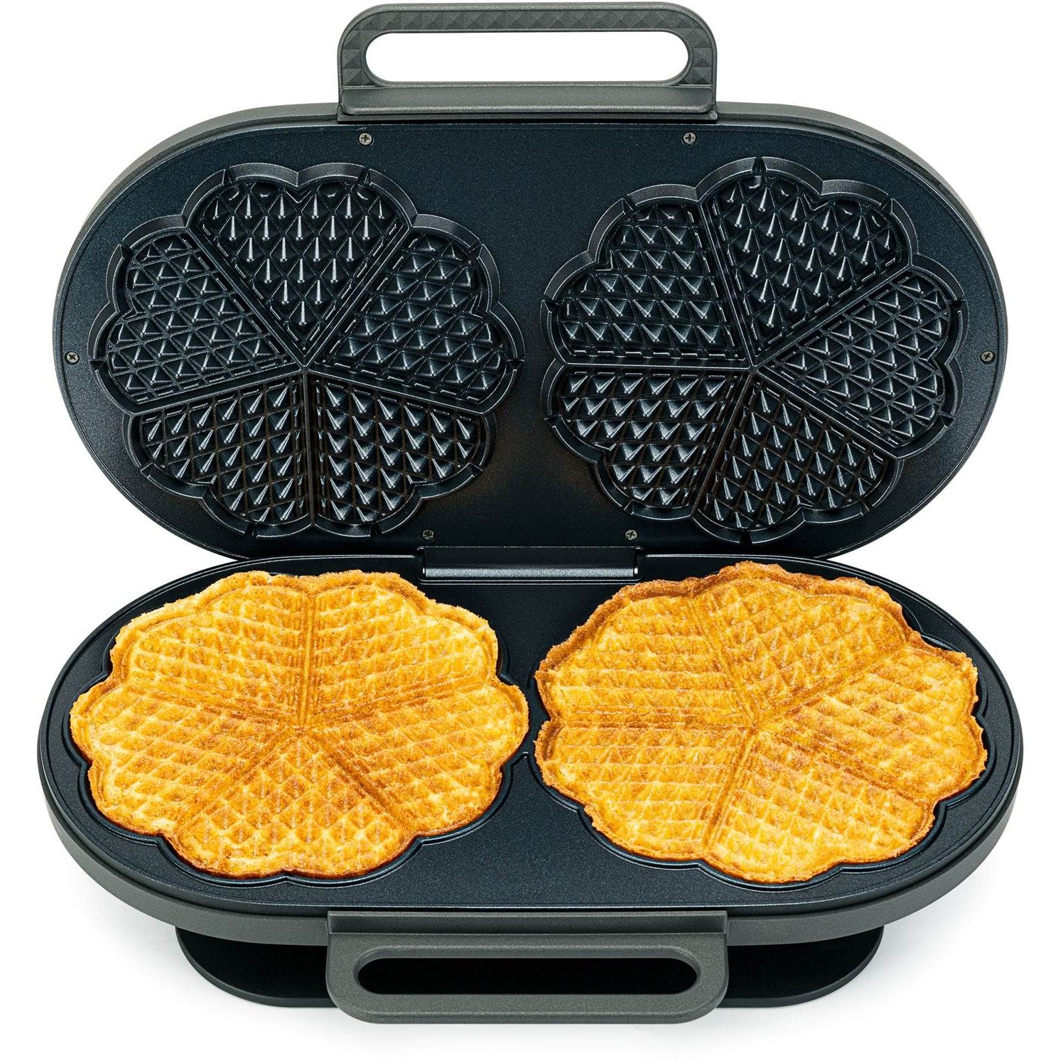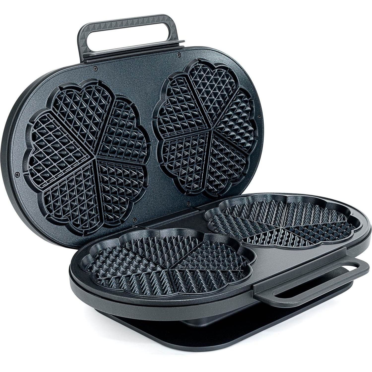 Nyd gyldne, sprøde og perfekte vafler. Dette vaffeljern bager 2 x 5 vaffelhjerter og hver vaffel har en diameter på 20 cm.