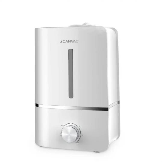 Lille, handy og nem at vedligeholde Canvac Q Air luftbefugter. Den er smukt designet i hvid/sølv. Modellen er udstyret med et vandfilter og er utrolig støjsvag.