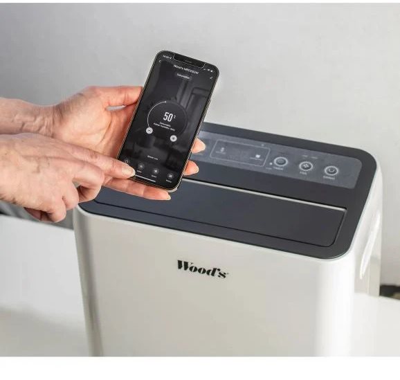 Woods Connect giver dig fuld kontrol over den smarte affugter. Woods Connect styrer hvert enkelt smart produkt individuelt. Uanset hvor du er, kan du styre alle Woods Connect-produkterne, hvis du har en internetforbindelse, uanset hvor du er. Du kan finde appen på Google Play og i App Store.