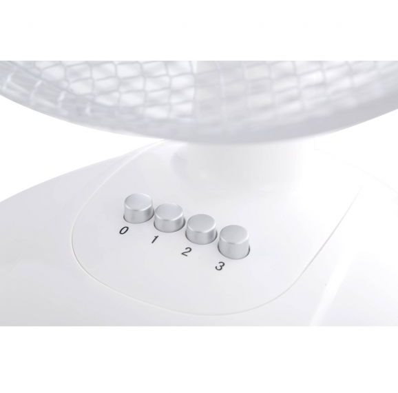 Den har en ventilatordiameter på 30 cm og kan indstilles til tre forskellige ventilatorhastigheder. Ventilatordelen kan vippes og drejes.