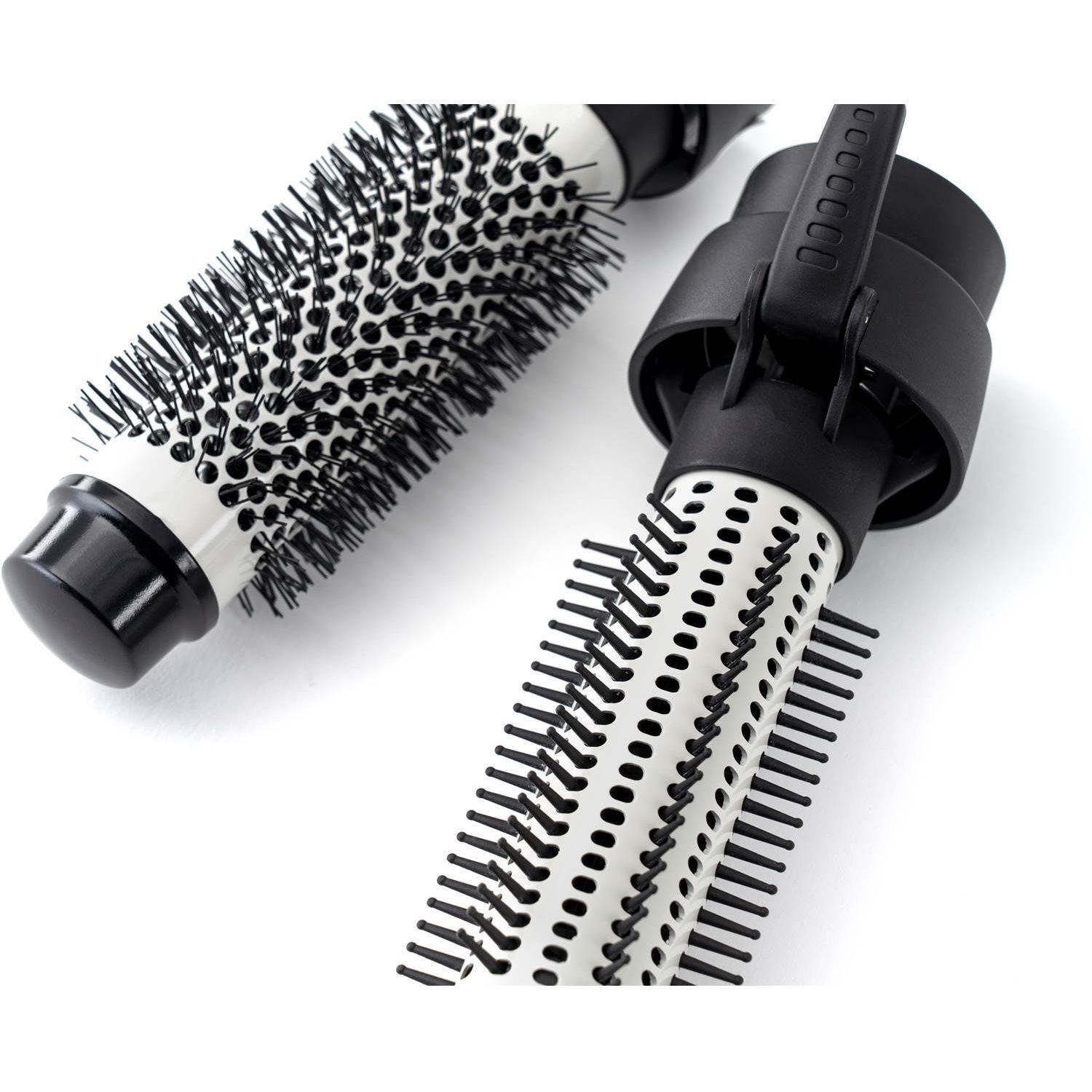 Når du køber din Airstyler Pro leveres den med et koncentratormundstykke til at tørre fugtigt hår og et mundstykke med pigge, der kan trækkes ind, der er 30 mm i diameter til at rede, forme og give håret volumen. Der medfølger også et varmebørstehoved som er 32 mm i diameter med keramisk belægning som former og giver fyldige krøller.