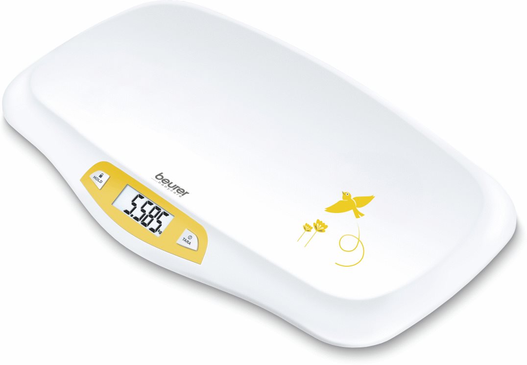 Beurer babyvlgt med buet overflade. Den har stort letlæseligt display og har autosluk og overbelastningsfunktion. Hvis barnet ligger uroligt er der automatisk og manuel låsefunktion af veje værdi.